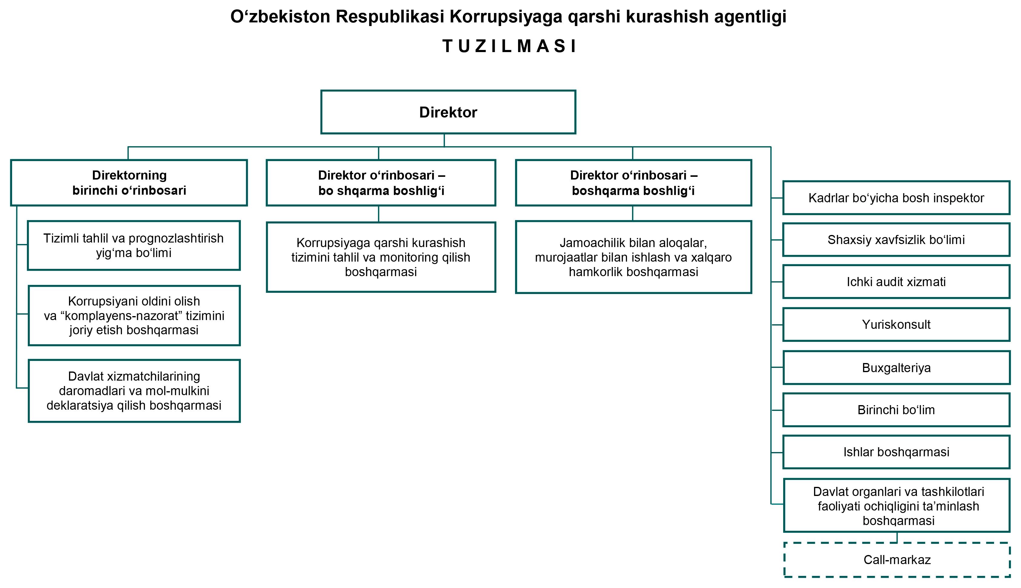 In accordance with Presidential Decree No. PF-6257 of July 6, 2021, “On measures to create an atmosphere of intolerance towards corruption, drastically reduce corruption in public administration, and expand public participation,” as well as Resolution No. PK-5177 “On additional measures” and a letter from the Anti-Corruption Agency of the Republic of Uzbekistan dated September 10, 2021, No. 03-07/6208, the Internal Anti-Corruption Department of the Tashkent City Administration was established.